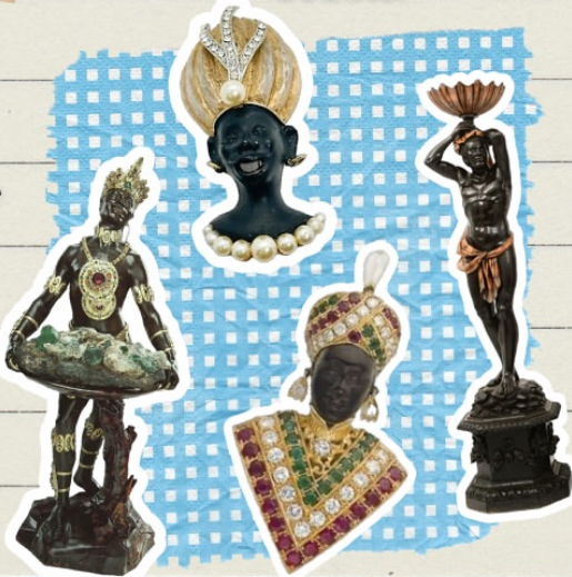 Elles seront tout de suite reliées aux Blackamoors – représentations stylisées d’esclaves vêtues de manière luxueuse, souvent dans l’art décoratif européen à l’époque coloniale. Apparaissant sous la forme de sculptures, de bijoux, de meubles etc.